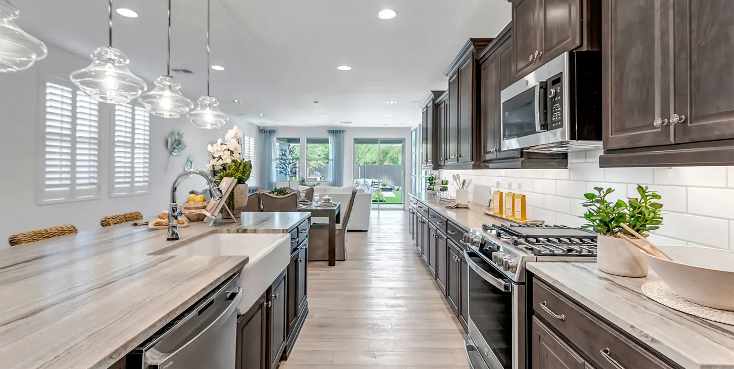 With flexible design options, this home is the perfect canvas for the lifestyle of your dreams. Transform your primary bedroom into an oasis you’ll never want to leave with options like a sitting area with a French door connecting to your covered patio or an extended luxury bathroom with a glass, spa-like shower and freestanding tub! Just get back from a morning hike with Fido? Rinse him off in his very own tiled dog shower, included in the super laundry with pet station option!
