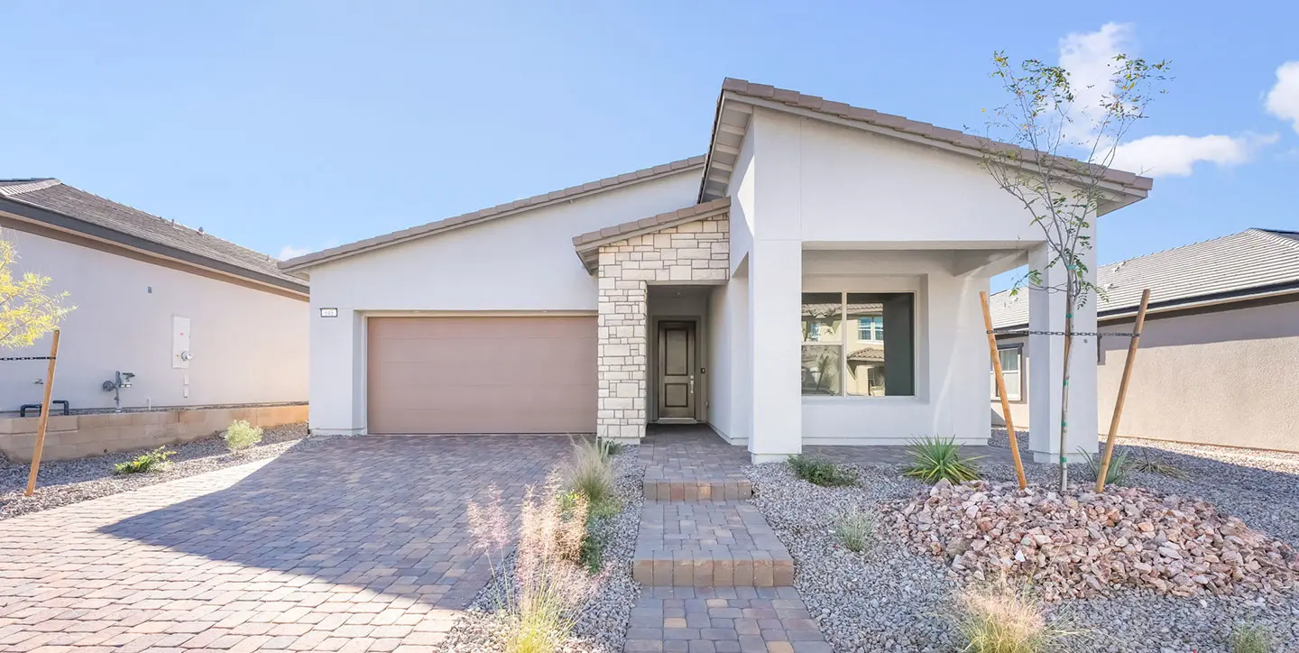 Discover a single-story home in Cadence, Henderson, where thoughtful design meets everyday ease. The open-concept main living area allows for indoor-outdoor living through dual sliding doors to a covered patio, creating a space that is perfect for expanding your entertaining zone. A flexible room with a walk-in closet invites you to tailor it to your lifestyle; perhaps a home office, creative studio, or guest retreat. An additional storage room keeps everything organized and within reach.