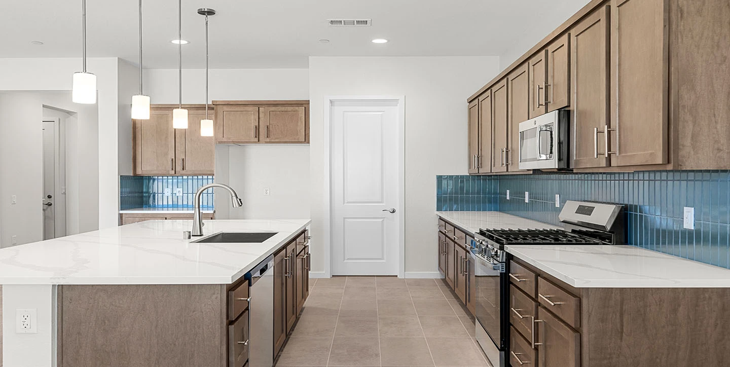 The kitchen is designed with both function and family in mind, featuring ample counter space for meal prep and a convenient nook that doubles as the perfect homework or work-from-home station. A nearby drop zone keeps bags, shoes, and everyday essentials neatly tucked away, ensuring a clutter-free lifestyle.
