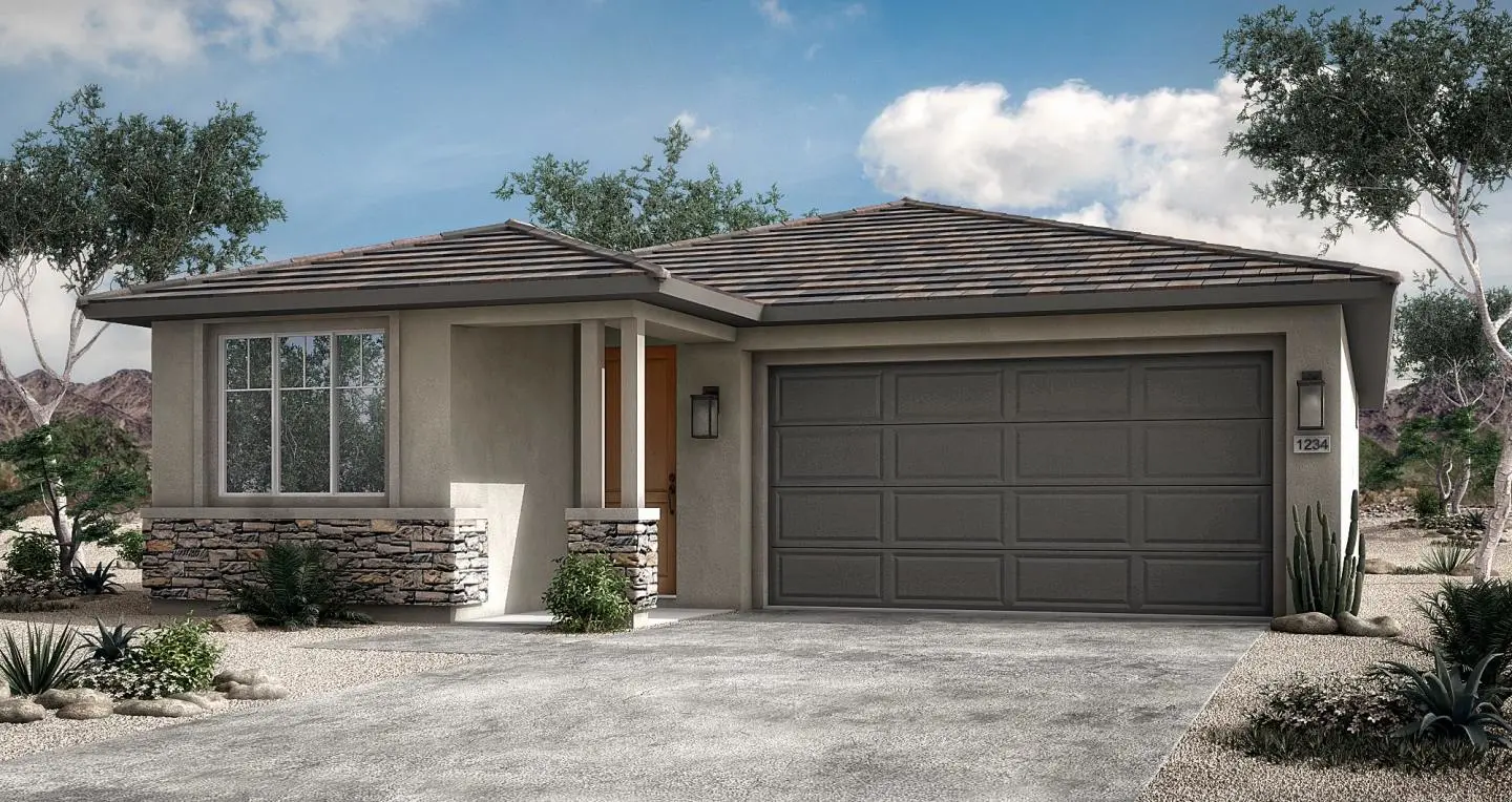 The Jade features 1,661 square feet, three bedrooms, and two bathrooms. Love to entertain? Cue the trumpets as your guests flow through your impressive foyer and into the heart of the party! Usher them towards the appetizers elegantly laid out on your large kitchen island, watch the game in your spacious great room, or reminisce with old friends beneath your covered patio. Elevate your hosting prowess by opting for the large covered patio extension and 12 foot center sliding glass door to create a seamless flow between indoor and outdoor living!