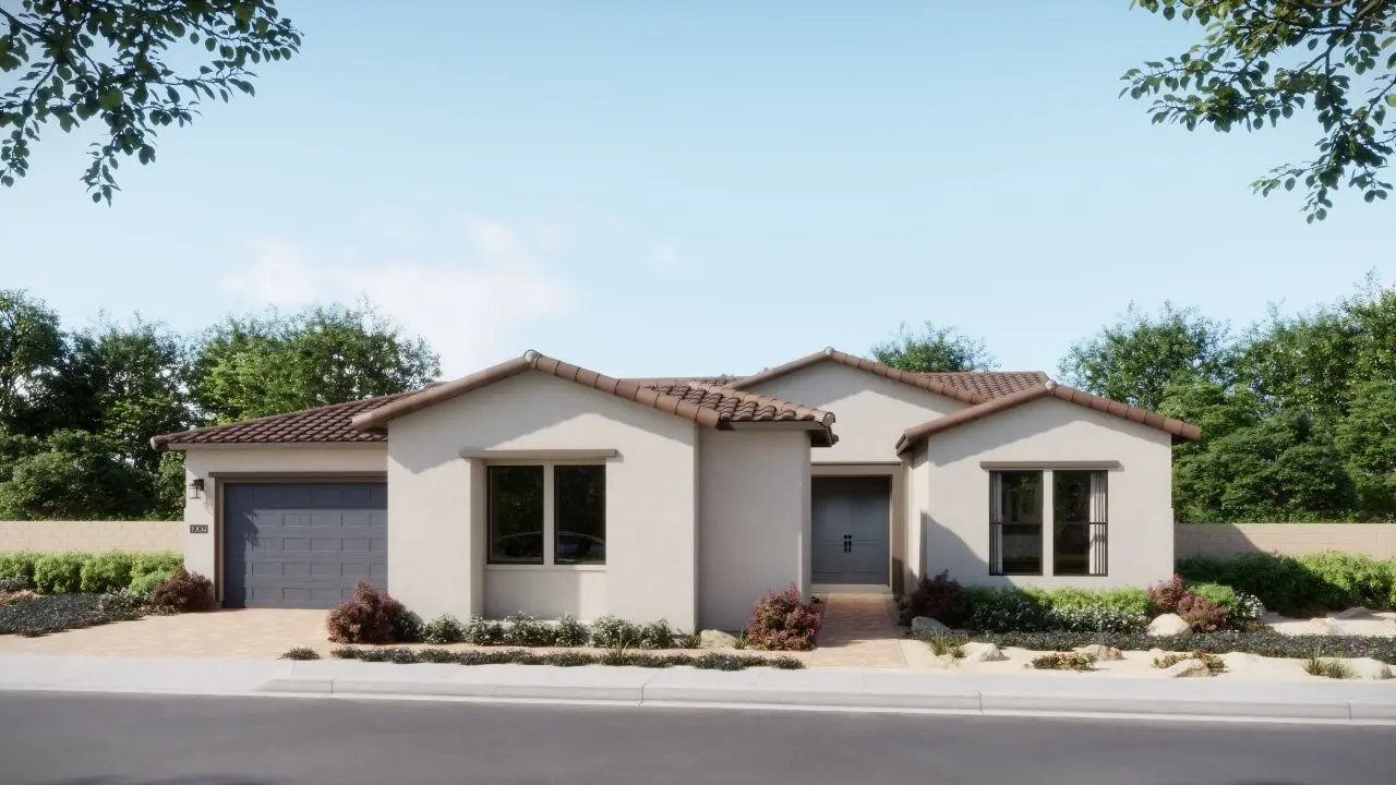 Featuring 3 spacious bedrooms and 3.5 baths, Plan 1023 includes a grand foyer leading into an open-concept great room and gourmet kitchen with premium finishes. A covered patio extends the living space outdoors, with an optional extension for added entertainment or relaxation. This plan also includes a second covered patio that can be converted into a flex space—ideal for a fitness room, sitting area, walk-in closet, or private retreat. A versatile flex room off the courtyard can be transformed into an en-suite guest room or home office. The expansive 3–4 car garage provides ample storage, with an optional RV garage or additional bay available. Designed for comfort and flexibility, this Gold Canyon home plan is perfect for those seeking a single-level residence with customizable features, natural light and desert views.