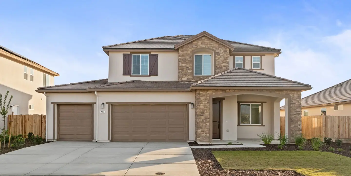 Enjoy a formal dining or living space, extra storage under the stairs, and a covered patio perfect for outdoor living. Upstairs, all bedrooms are pre-wired for ceiling fans—ideal for Central Valley summers. The primary suite offers a spa-like bath with a tiled shower extending to the ceiling.
