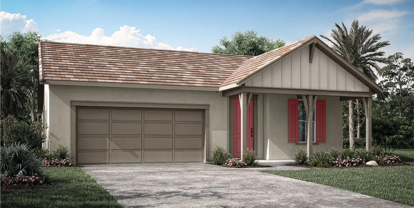 The primary suite offers a walk-in closet and private bath and an upgraded tile surround shower. Two additional bedrooms, also pre-wired for ceiling fans, share a full bath. Throughout the home, Designer White Amalfi style cabinets with hardware create a timeless finish.