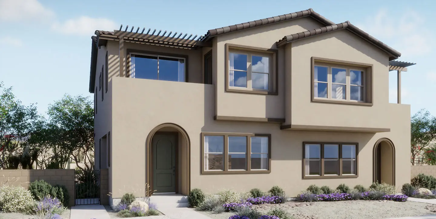 This alley-loaded townhome offers 1,942 square feet with three bedrooms, two and a half baths, and a two-car garage. The first floor is designed for easy, open living, where the main space flows from the kitchen into the living area. A covered loggia just off the kitchen creates a natural extension outdoors, while added cabinetry in the pantry keeps everything organized and within reach. A drop zone at the garage entry helps keep daily essentials in place.