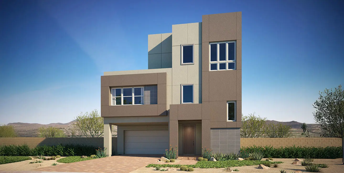 This Summerlin home stretches across three thoughtfully designed levels, each with a private bedroom suite and bath, giving everyone their own retreat. The bonus room on the lower level opens to a covered loggia, where mornings can begin with coffee or evenings can drift into conversation under the sky. On the main living floor, the primary suite sits adjacent to the great room, which rises with double-height ceilings and large windows that fill the space with natural light, creating a sense of openness and calm.