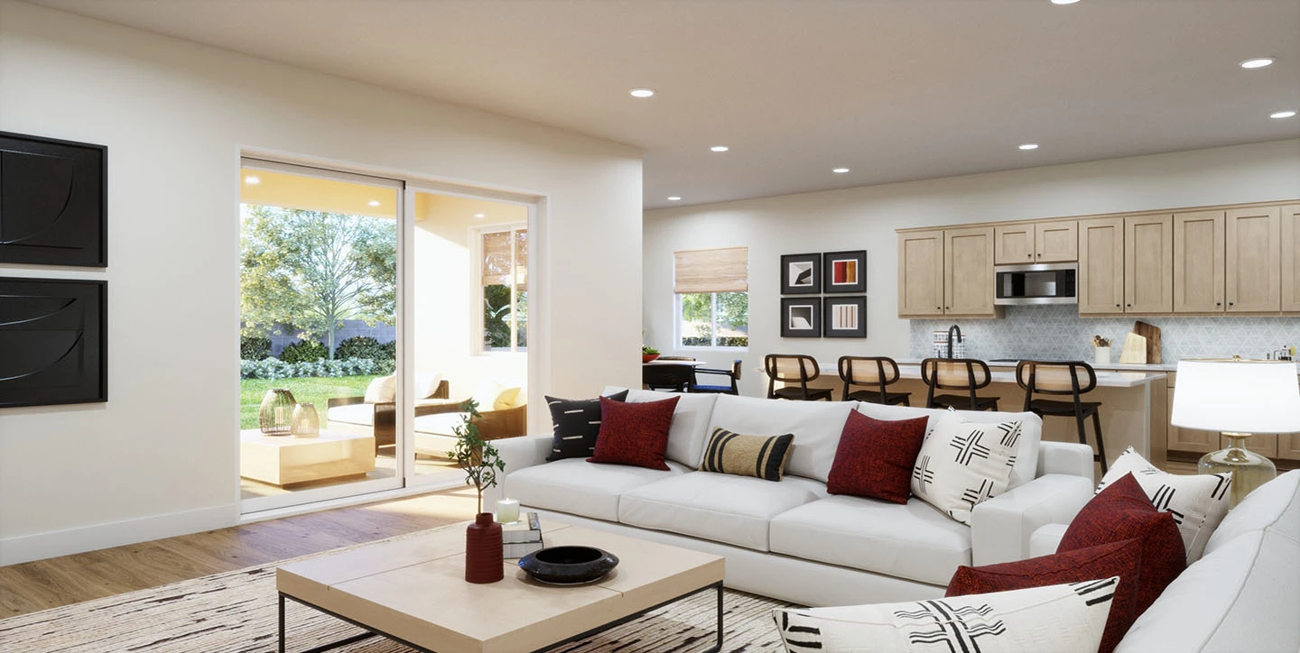 The Luna Farmhouse offers 3 bedrooms and 2.5 baths with a beautifully open floorplan, perfect for entertaining and everyday living. Situated on a spacious corner lot of 6,282 sq. ft., this home features an upgraded Designer Package with quartz counters, stylish backsplashes, and a charming apron-front sink. A large walk-in pantry adds convenience to the gourmet kitchen, while the great room seamlessly connects to a complete covered patio with lighting and a ceiling fan outlet—ideal for outdoor dining or relaxation. Located in Silverwood, a master-planned community that will soon feature parks, trails, pools, pickleball courts, and more, this home combines modern farmhouse design with an active, connected lifestyle.